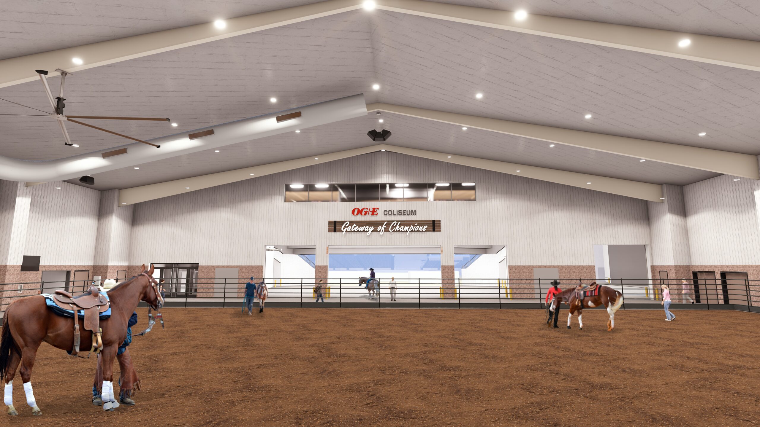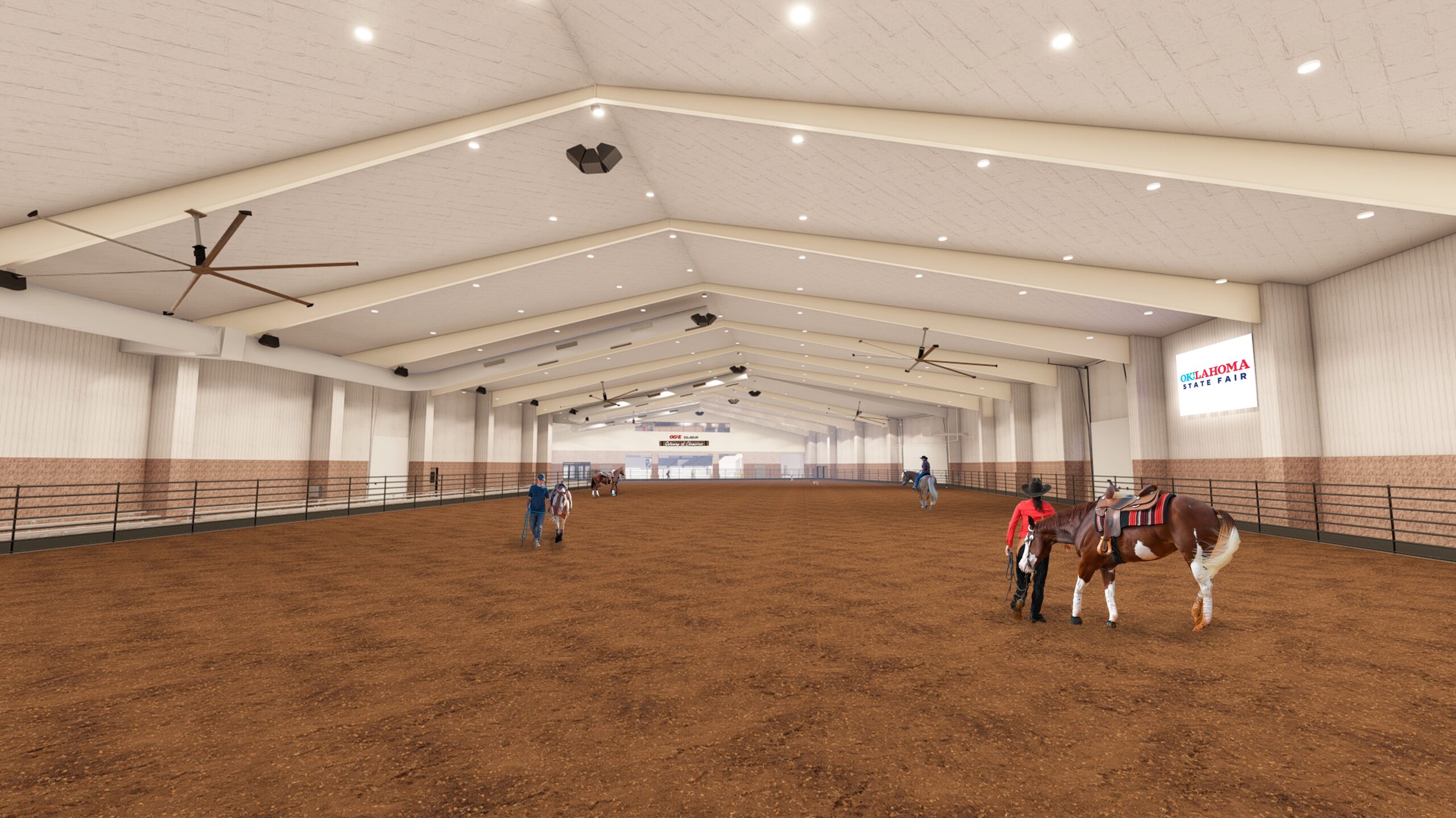 With the completion of the OG&E Coliseum and the demolition of the Jim Norick Arena, it is time to begin connecting the Super Barn to the Coliseum. This is necessary so our equine & livestock show participants have covered access from the prep and warm-up areas to the show ring. Connecting these two areas, on the footprint of the old Norick Arena, will be the Gateway of Champions Promenade. The promenade will house the new Norick Arena (a 120’ x 250’ performance arena with seating for approximately 400 spectators), a 12,500 square foot exhibit hall, two concession stands, and a covered access area for cattle pens and/or movement between the Super Barn and the Coliseum. This additional show ring will allow us to offer our clients four (4) full-size climate-controlled show arenas, something that is not available in any other equine/livestock facility in the region. The promenade will be able to be closed off from the Coliseum, allowing two (2) separate events to take place simultaneously, making OKC Fair Park even more versatile. The projected opening of the Gateway of Champions Promenade is mid-2027.